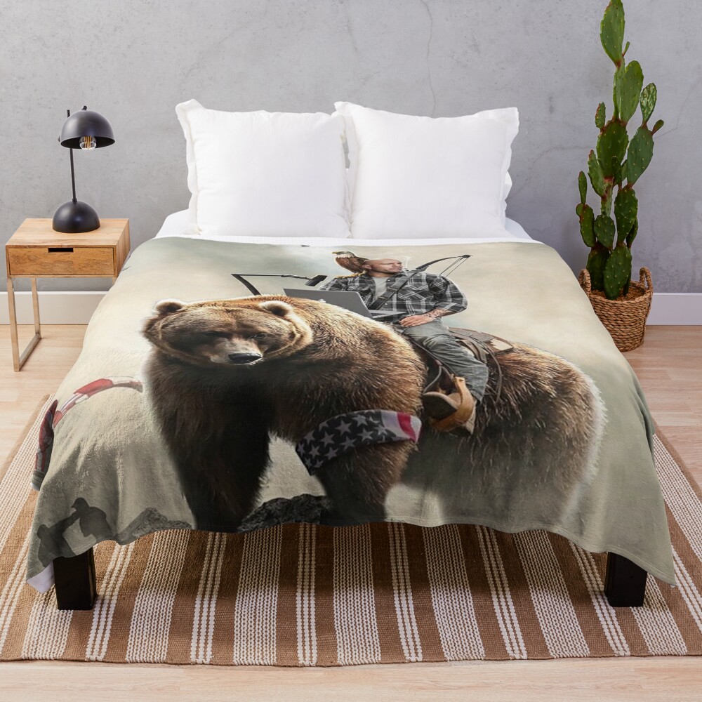 Joe Rogan Riding A Bear Aliens On Trend Throw Blanket